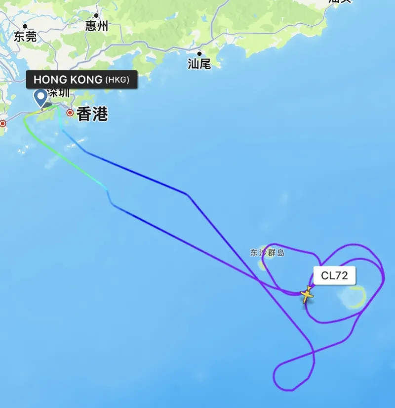 ADS-B信号轨迹显示出香港政府飞行服务队飞机勇闯“桦加沙”的航迹。